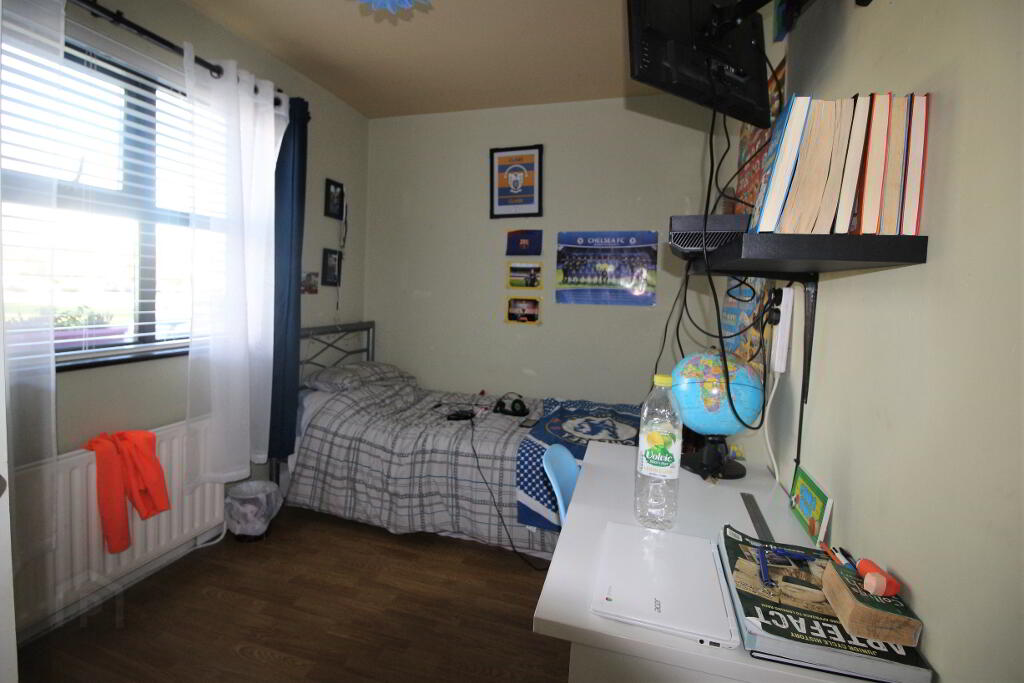 Bedroom Three 4.65m (15'3') x 2.66m (8'9') Fitted units, laminated wood flooring.