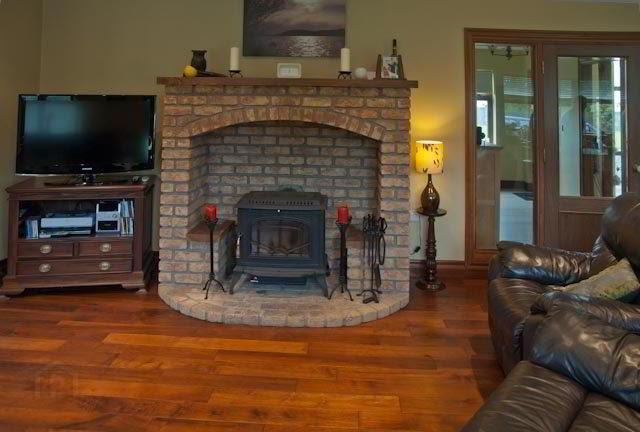 Kitchen / Living Area 7.92 m x 4.34 m Fitted units and island unit having, marble counter top, recessed lighting, mahogany solid wood flooring, solid fuel range with brick surround