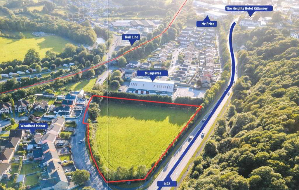 The site has the benefit of dual frontage to both the N22 (main Killarney to Cork route) and the Ballycasheen road. Currently the land is made up of mature trees and hedgerows.
