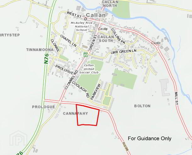 Directions From Callan town center, travel along the Clonmel road for c.400 meters. At the Windgap road junction, turn left and the land is on the right hand side.