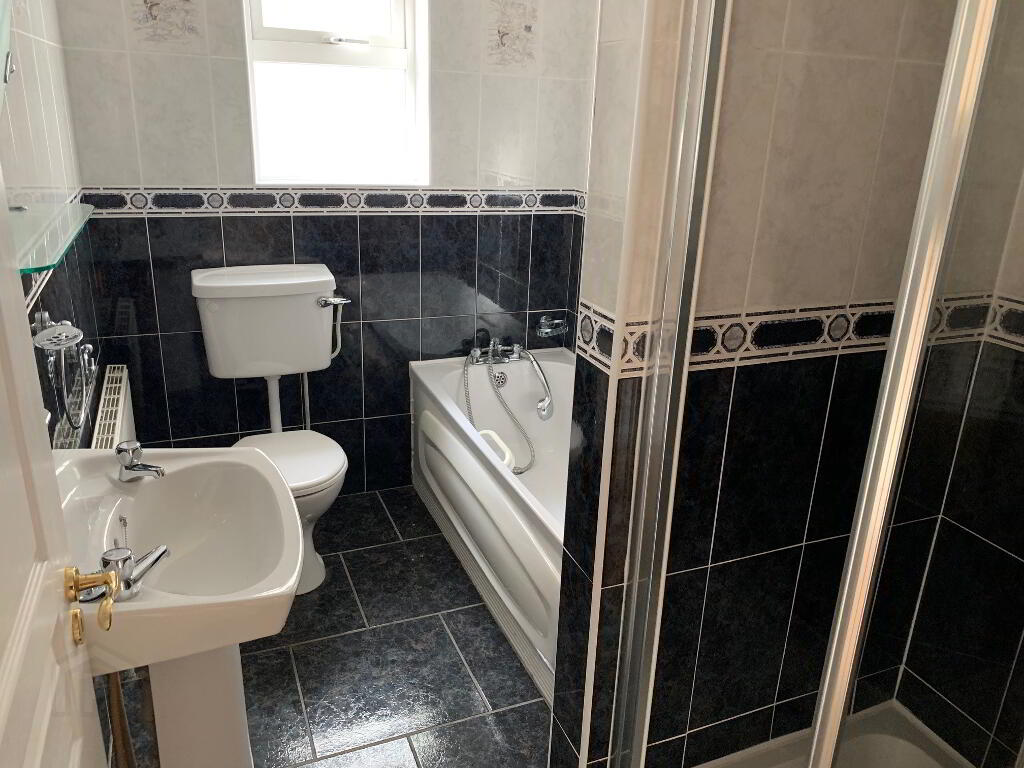 Ceramic Tiled Floor, Radiator, W.C., W.H.B., Bath, Separate Cubicle with Power Shower, Fully Tiled.