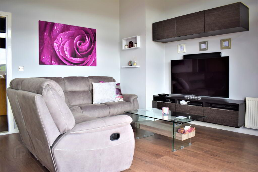 Spacious, bright and airy. The high ceilings with attractive down lights highlight this feature living area. The glazed patio doors link in the spacious balcony area. Finished with laminate flooring.