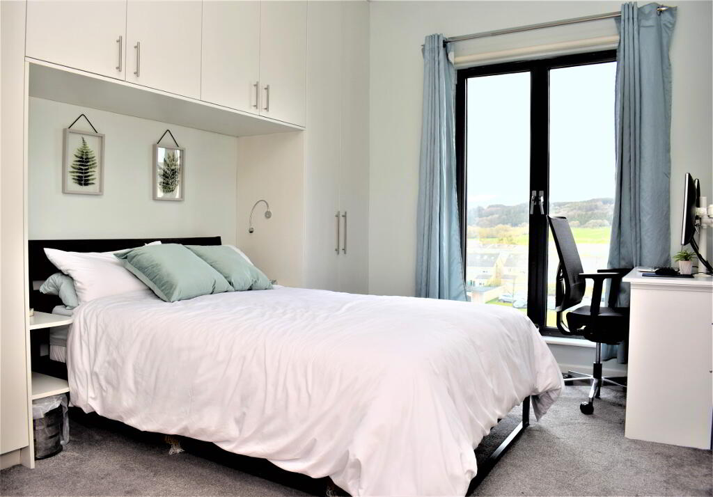 A well proportioned double bedroom with added wardrobe space. Westerly views catching the evening sunlight. Carpet flooring.