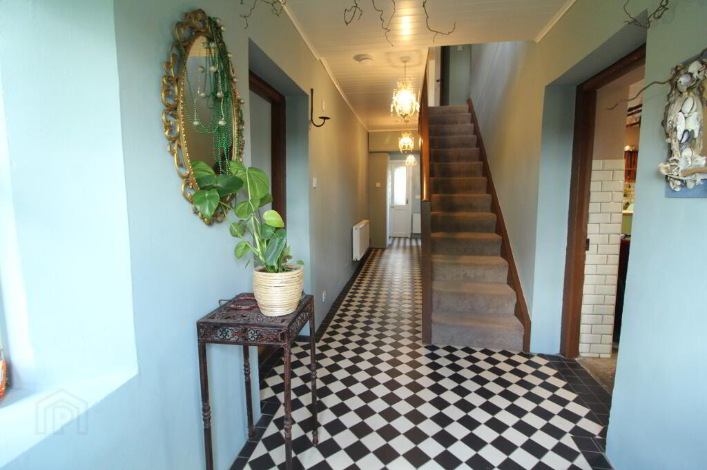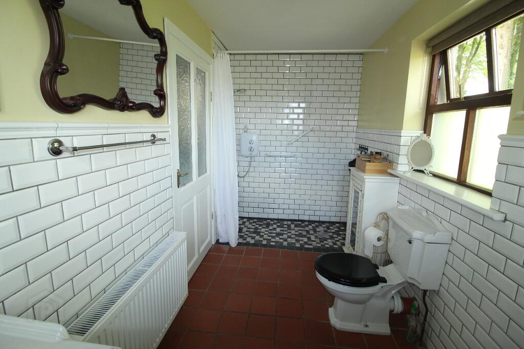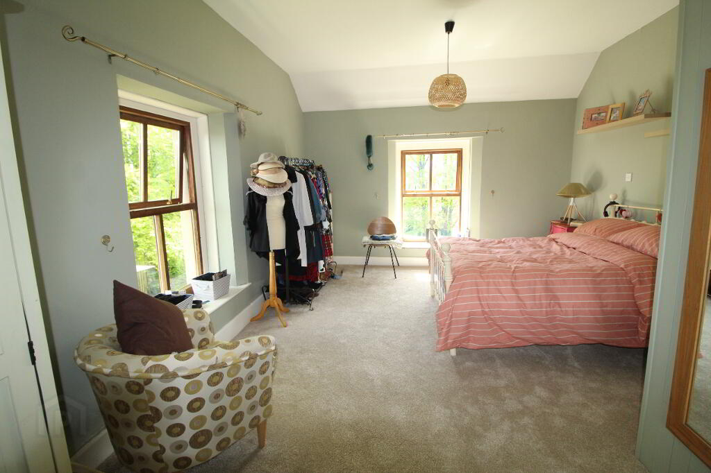 5.48m x 3.97m Tastefully decorated retaining many original features, window to front elevation and side elevation, original concrete flooring, half tiled walls throughout and half painted throughout, fitted kitchen with oak wood work top, under counter fridge, freezer in hallway, dishwasher, stand alone gas cooker with 4 burner hob, oven and grill, extractor fan, Rayburn supreme solid fuel cooker with back boiler, radiator to wall, ample electric sockets throughout, timer controlled LED down lights and pendent light.