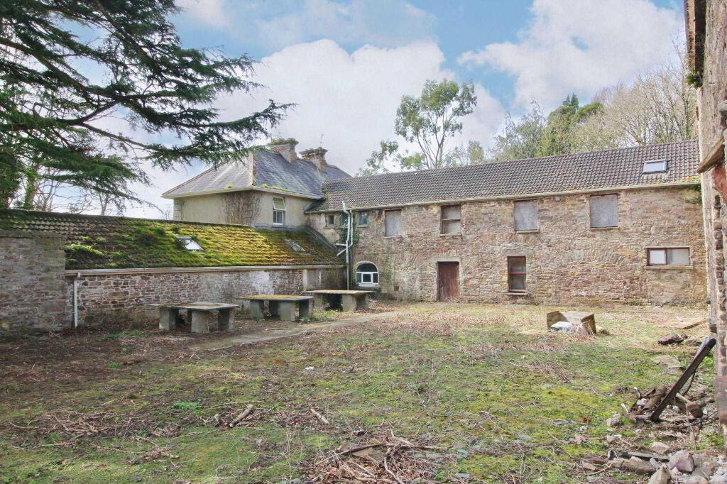 REA Dooley Group bring to market this impressive two storey residence built in the late 18th Century. Property is approached by a long sweeping tree lined avenue and is set on approx 14 acres of a mix of good grazing land and mature woodland. The river Douglasha runs though the woodland area, there is also a water well that can be connected on site if desired, mains connection was fitted last year and there are several outbuildings. Accommodation comprises of: entrance hall, sitting room, living room, kitchen/dining area, 4 bedrooms, reception, ladies & gents wc.