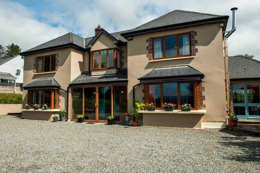 Exceptional four bedroom detached family home extending to 270 sq m on landscaped 0.9 acre site with stunning mountain and lake views.