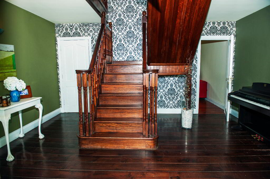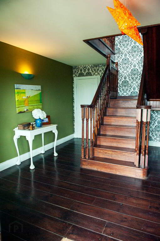 Entrance Hallway— French pine flooring with closet off hallway. Oak wooden staircase.