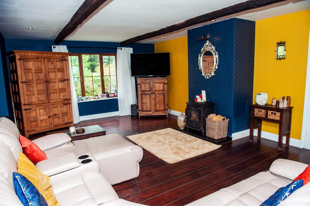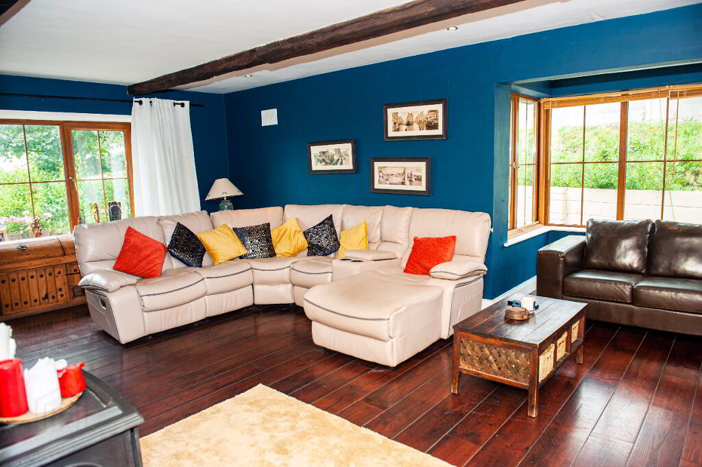 Lounge / sitting room—Old style wooden beams in ceiling. Two large bay windows. Solid fuel fireplace and multiple power points and spot lighting.