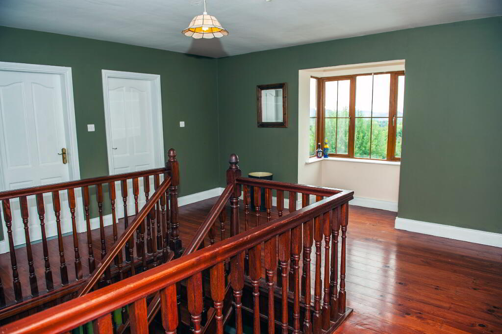Upstairs—Spacious landing with large bay window and superb mountain and lake views.