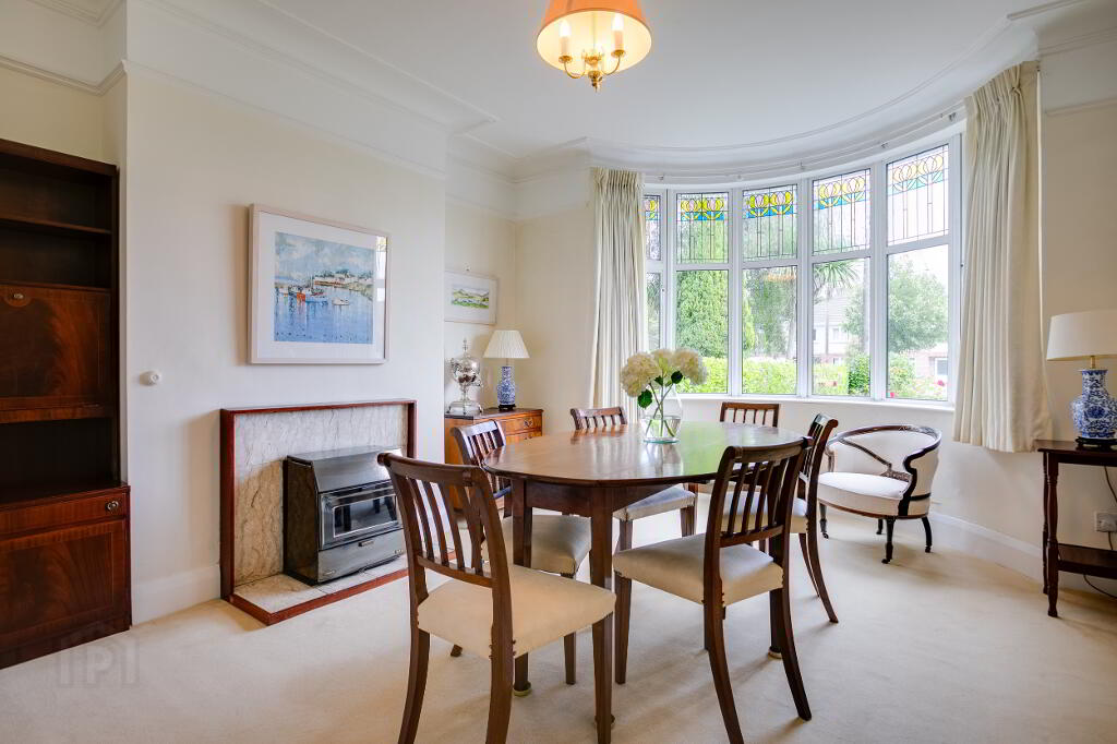 Dining Room: beautifully proportioned light filled room with feature bay window with stained glass inset, picture rail and centre rose