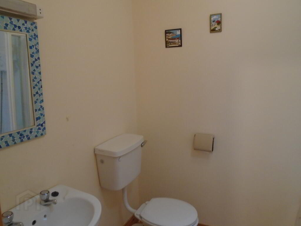 Bathroom - toilet, wash-hand-basin, bath, electric shower over bath.