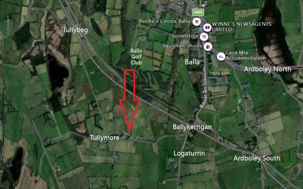 The subject property comprises a residential building site which is being sold subject to planning permission to any prospective purchaser. The site which has extensive frontage is in a rural location with uninterrupted views of the well known local town parks is also in ear shot of the local GAA pitch and well regarded par 3 golf course. The village of Balla is a very popular residential location for families as it has the benefit of pubs, restaurants, shops, primary and post-primary school and is also within a short commute to Castlebar and Claremorris.