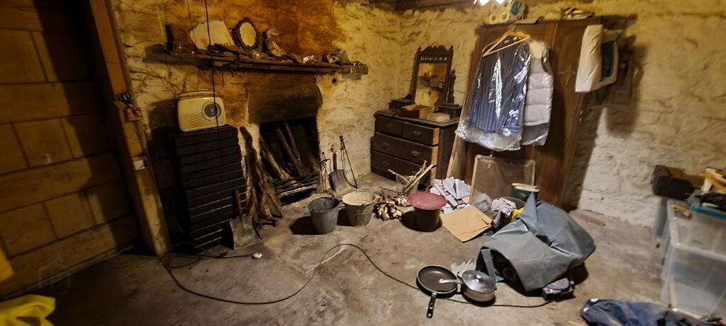 3.99m x 3.67m Stone flag floor, fire opening, floored loft area.