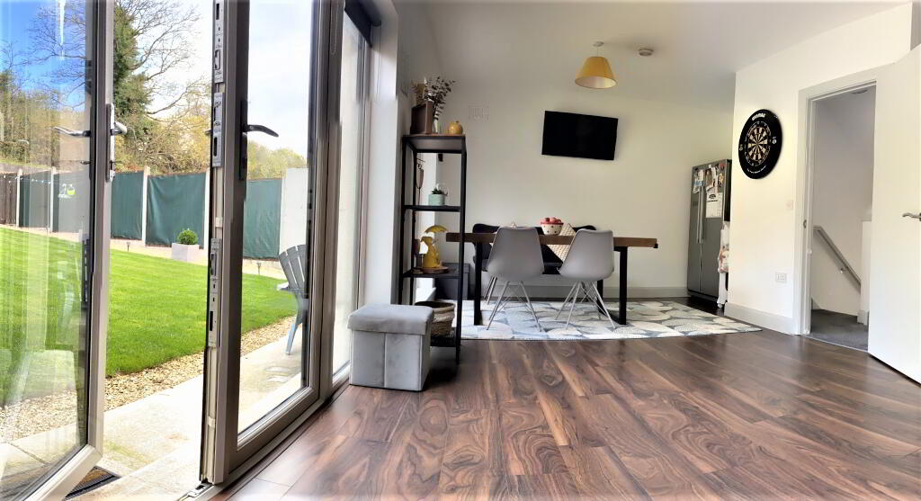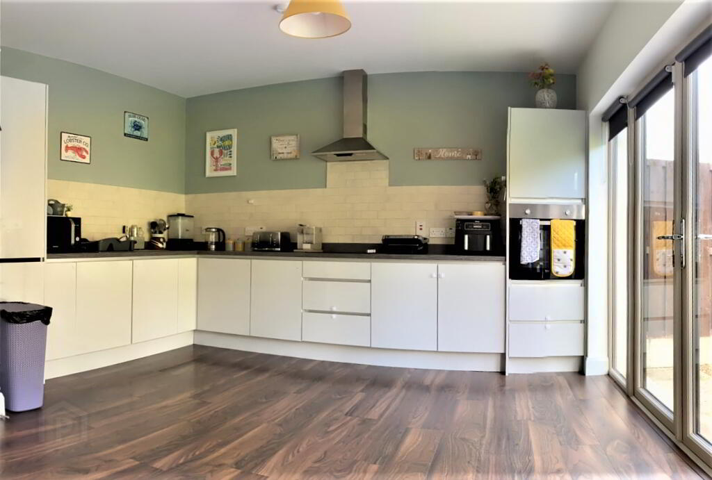 Kitchen with Dining space: What a bright and energy filled everyday space. Awash with natural light from early morning. Appealing rural aspect and totally private aspect. Fitted with floor and eye-level units, integrated appliances and attractive tiled splashback. Double doors to the rear gardens. Ample dining space for family dining with the option of everyday living space also. Finished with timber flooring.