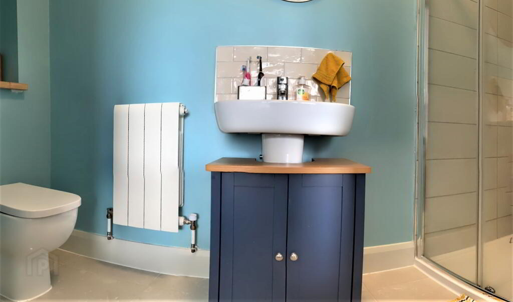 Bathroom: Boutique in size but bespoke in design. The fitted Bath is a haven and complemented nicely with tiled walls and the tasteful decoration. Fitted WHB with vanity unit and fitted Toilet.