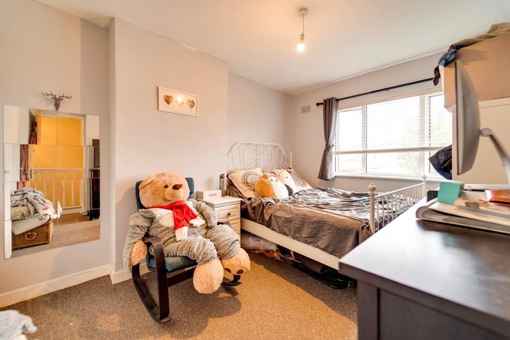 To the front of the house is the driveway with off street parking and side access to a spacious back garden (with shed)