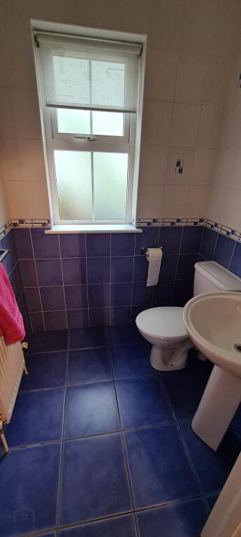1.67m x 1.54m Downstairs bathroom which is fully tiled, radiator, whb, wc, window, radiator, mirror and shaver light.