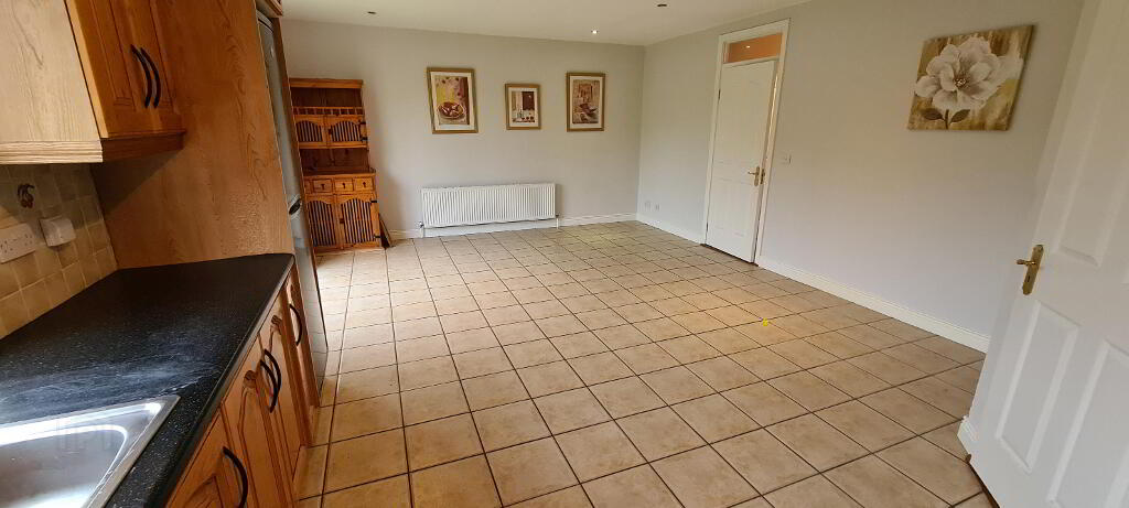 7.24m x 4.69m Very spacious kitchen and dining area to the rear of the house with sliding patio doors to rear garden. Fitted kitchen with lots of storage space, plumbed for dishwasher, electric hob and oven, tiled flooring, tiled over counters, window to back garden, door to utility room.
