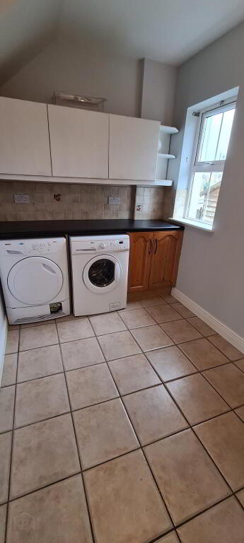 2.92m x 2.17m Utility room at the rear whch is very spacious, fitted units for storage, door to side of house, radiator, plumbed for washer and dryer, tiled flooring, part tiled walls.