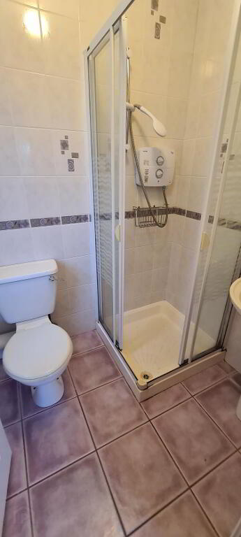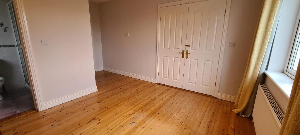 4.65m x 3.28m Master bedroom with wooden flooring, built in wardrobe, window to rear garden, radiator, tv and phone point, ensuite with fully tiled flooring and walls, wc, whb, electric shower, radiator, mirror shaver, window and radiator.