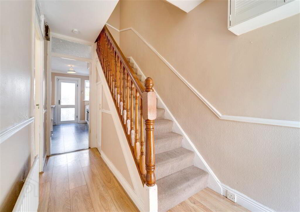 The accommodation comprises of hallway, bright living room leading to the dining room which connects with the kitchen. Upstairs there are three well appointed bedrooms with fitted wardrobes and a family bathroom. The rear garden is laid out with a large paved area and a concrete built shed. At the front there is and abundance of off-street parking.