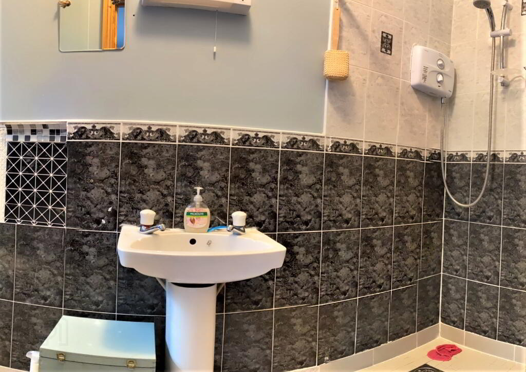 Bathroom: Very well presented with full tiled floor level shower area and tiled floor. Power shower, WHB and Toilet.