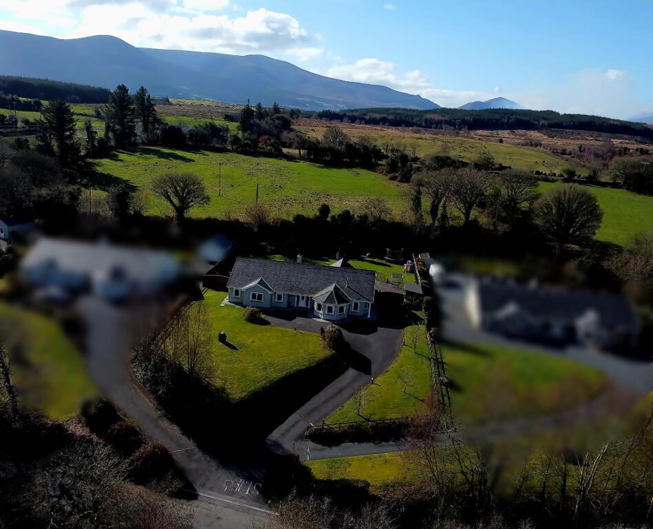 From Killarney drive out the main N22 passing through railway crossing at Minish. Head towards end of straight stretch of road, turn right (after JR Spares) go over bridge keep left, the house is the fifth on the right hand side