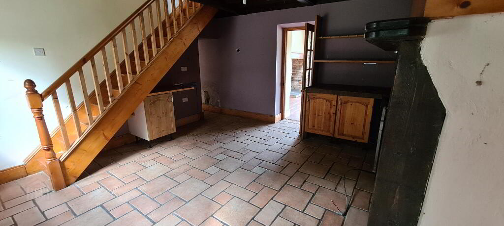 4.35m x 4.17m Exposed stone walls, fitted units, sink unit , power points, radiator, exposed ceiling beams, timber staircase, tiled floor, pvc window.