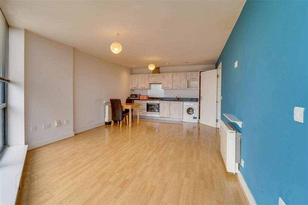 The accommodation briefly comprises a large entrance hallway with a spacious separate storage room. There are 2 large double bedrooms (with built-in-wardrobes) and access to a sizeable balcony off the master bedroom. There is also a large open plan kitchen, living and dining room with integrated kitchen units and appliances.