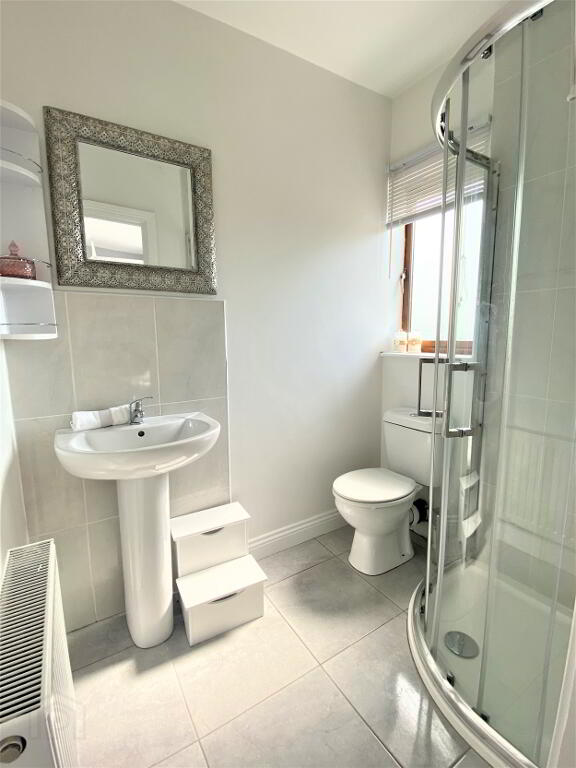 En Suite: Very well presented with full tiled floor level shower area and tiled floor. Electric shower. WHB. Toilet.