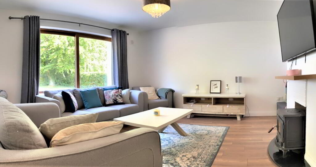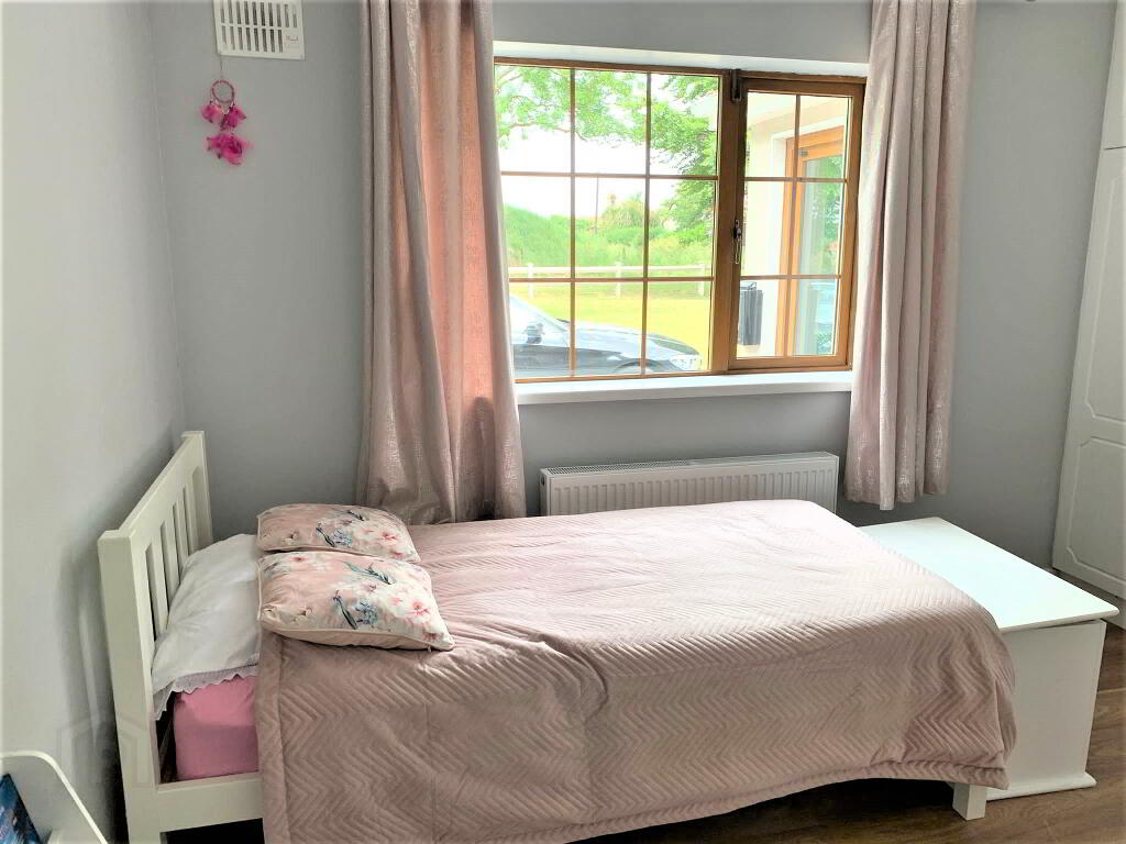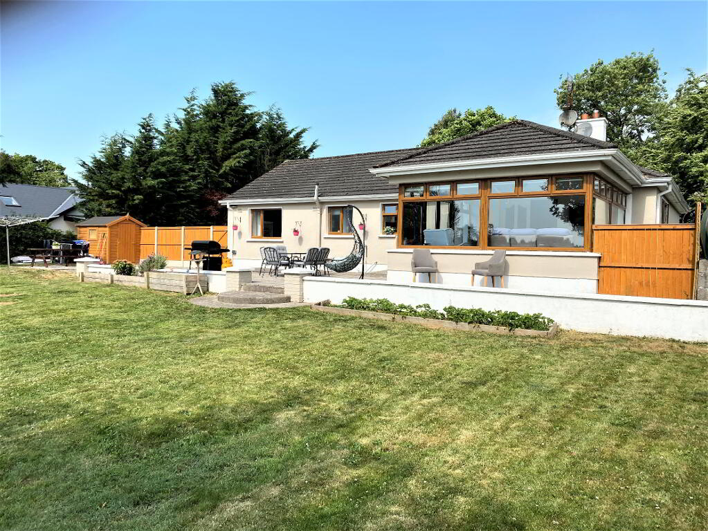 This very well-presented bungalow at Bough, 1Km from Rathvilly Village, enjoys a charming rural setting while being close to the local services including Primary School, shops, pharmacy and the local cafe. The Bungalow stands on well-proportioned gardens, with mature trees and established hedging to enclose the rear lawn area. Very child-friendly with ample space for a large playground and generous accommodation in the Bungalow to include 3 Double Bedrooms. The Residence has been extended with a well-appointed Sun Lounge and this additional living space nicely compliments the generous Lounge and spacious Kitchen and Utility areas.