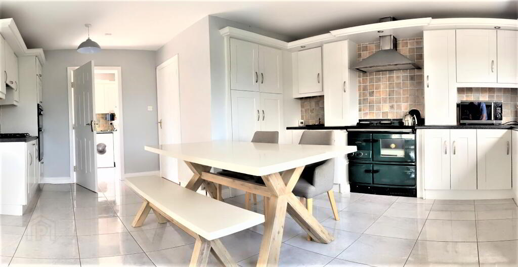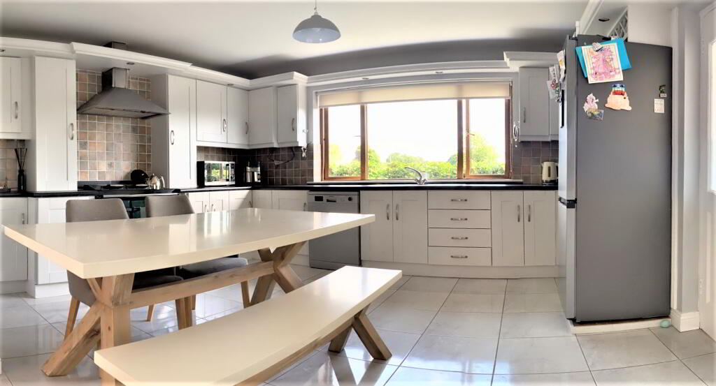 Kitchen/Dining area: Fully fitted with an expansive range of floor and eye-level units. A bright and airy Kitchen space finished with tiled flooring. Inter-connected to the Sun Lounge.