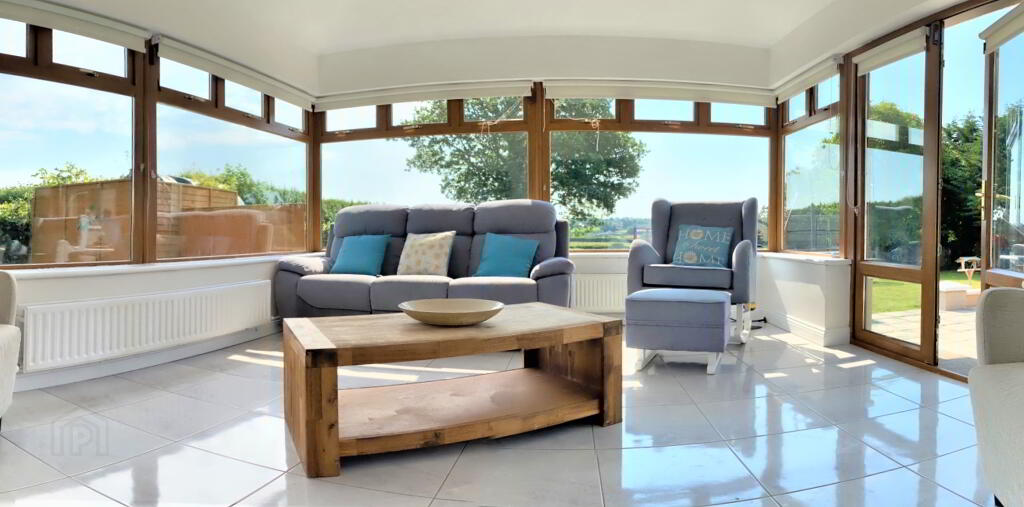Sun Lounge: Ideal orientation for morning and day-long sun. Fully glazed yet totally private. Tiled flooring and slate roof finish. Doors to the gardens.