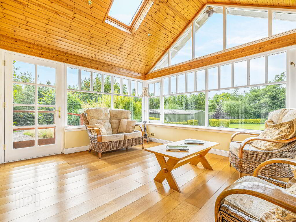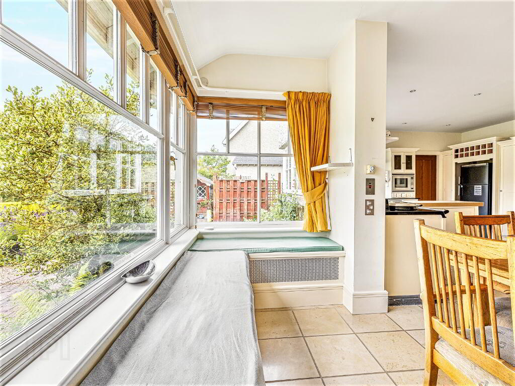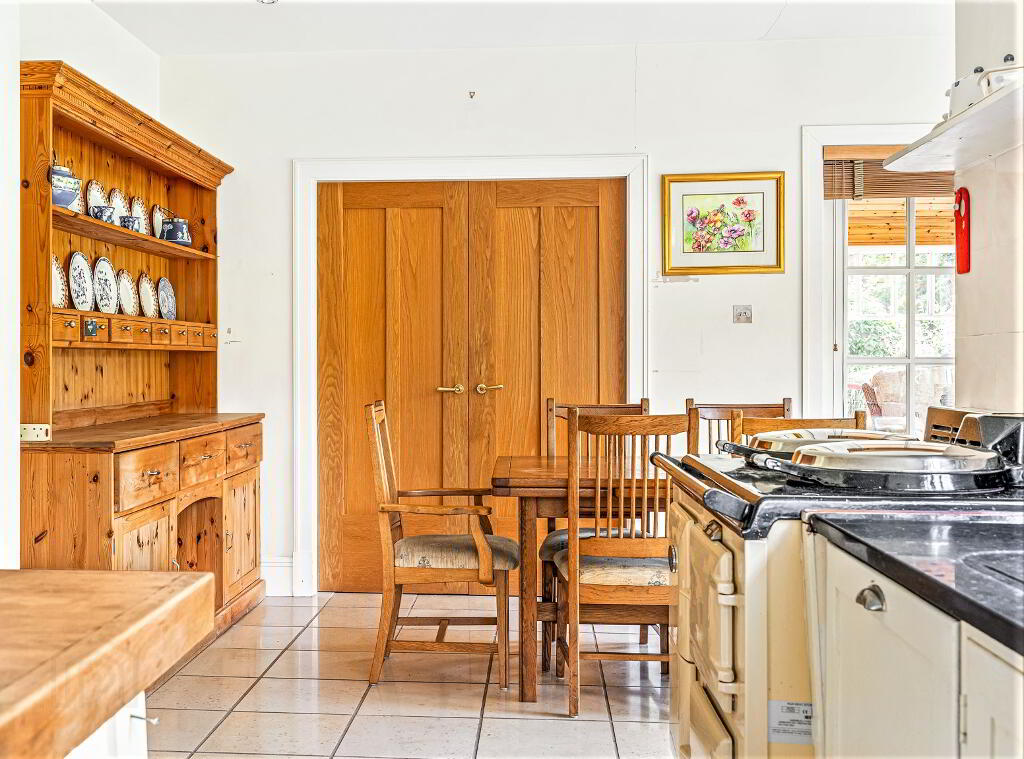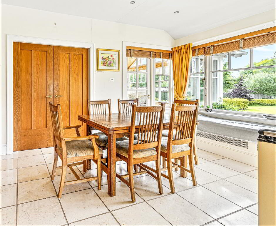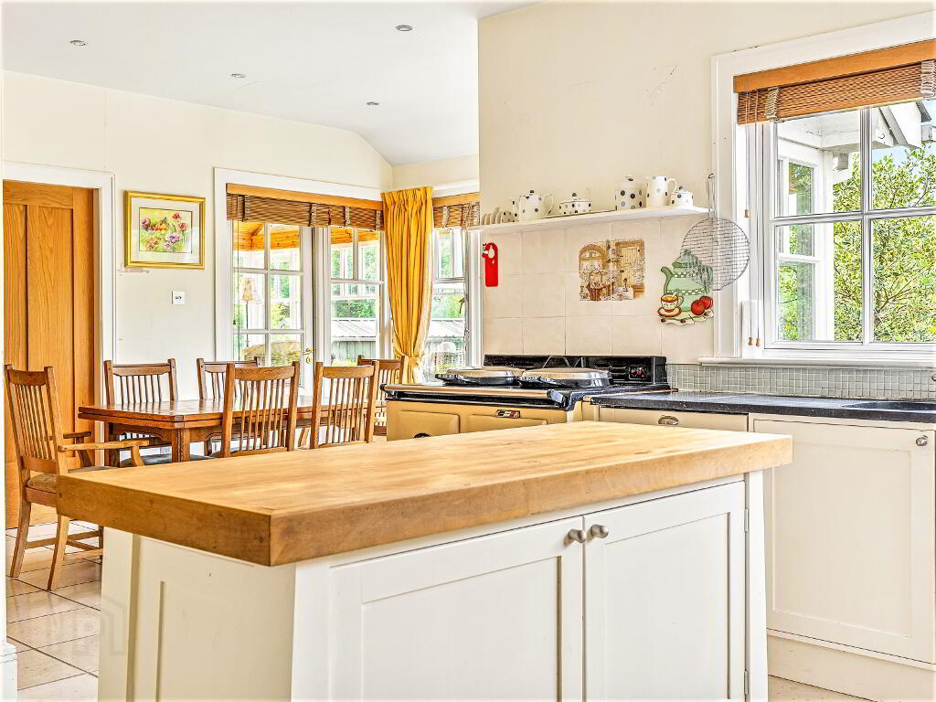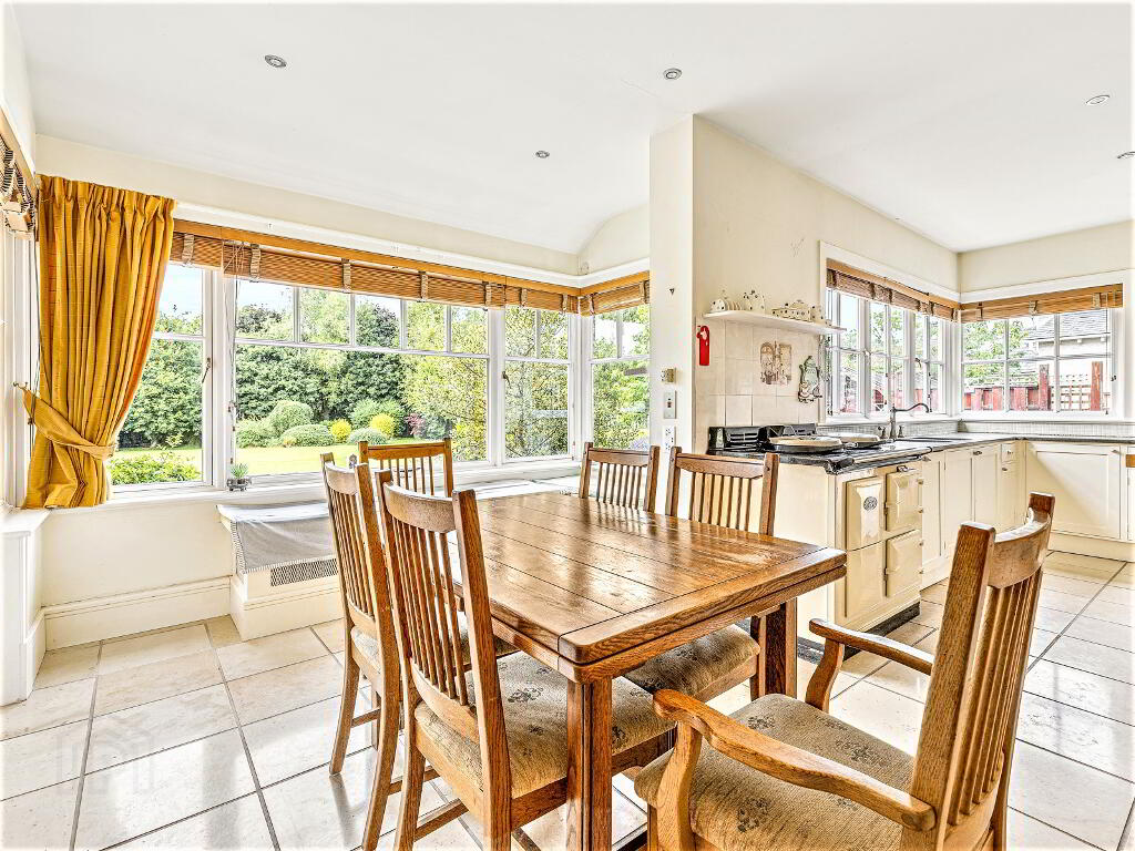 Also awash with natural light, overlooking the exquisite rear gardens and boasting a very practical design. Excellent array of floor and eye-level fitted units augmented with a large island workspace. The electric AGA is a continuous source of heat and adds to the ambience. This impressive everyday space accommodates family dining and also links easily to the Sun Lounge.