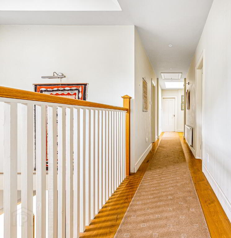 This superb residence oozes quality and positive vibes throughout. The high-spec finish throughout the residence is added to with appealing features such as the high ceilings, the capturing of natural light throughout, wainscot panelling finish to the Entrance Lobby and stairwell, French Oak flooring to the Reception areas and bespoke Fireplace designs, all complimented with quality internal materials from Oak doors to polished stone work-surfaces in the Kitchen and Utility areas.