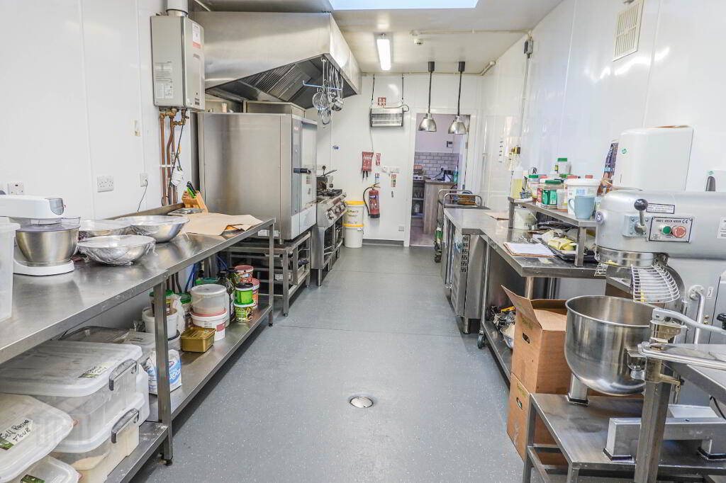 - Display counters, coffee dock, fullcatering kitchen with ancillary stores