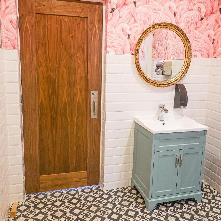 - First floor restaurant area with toilets.