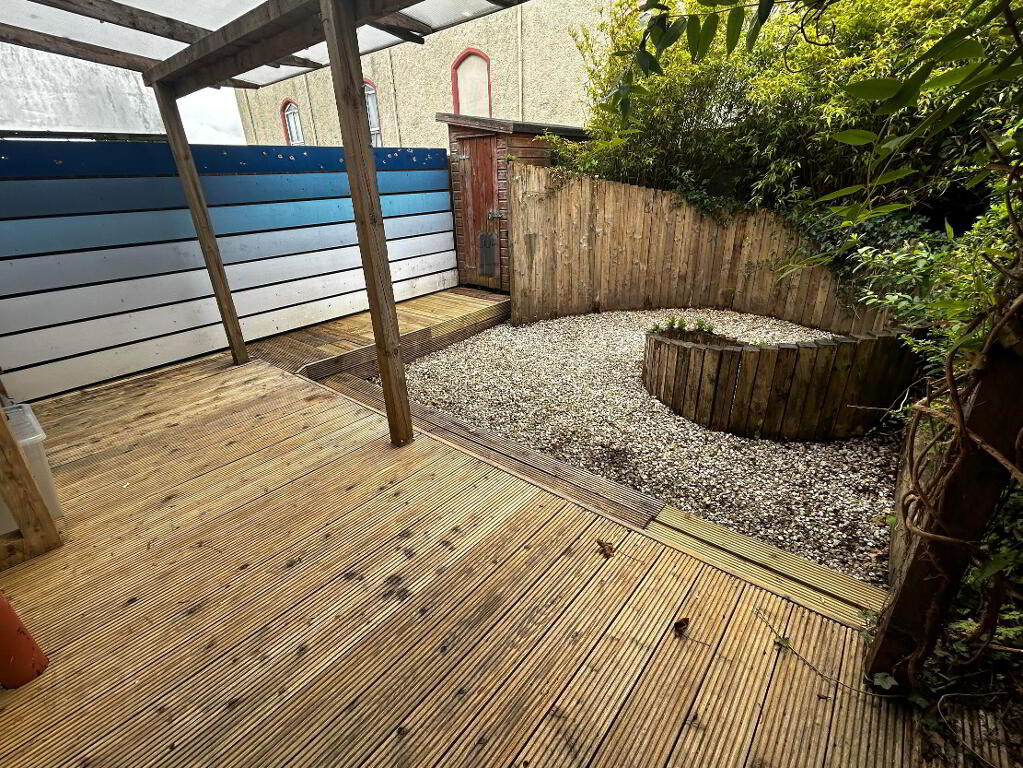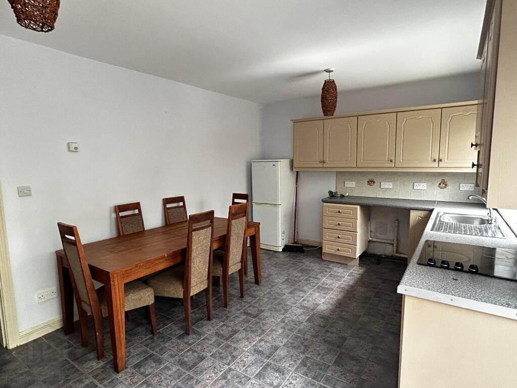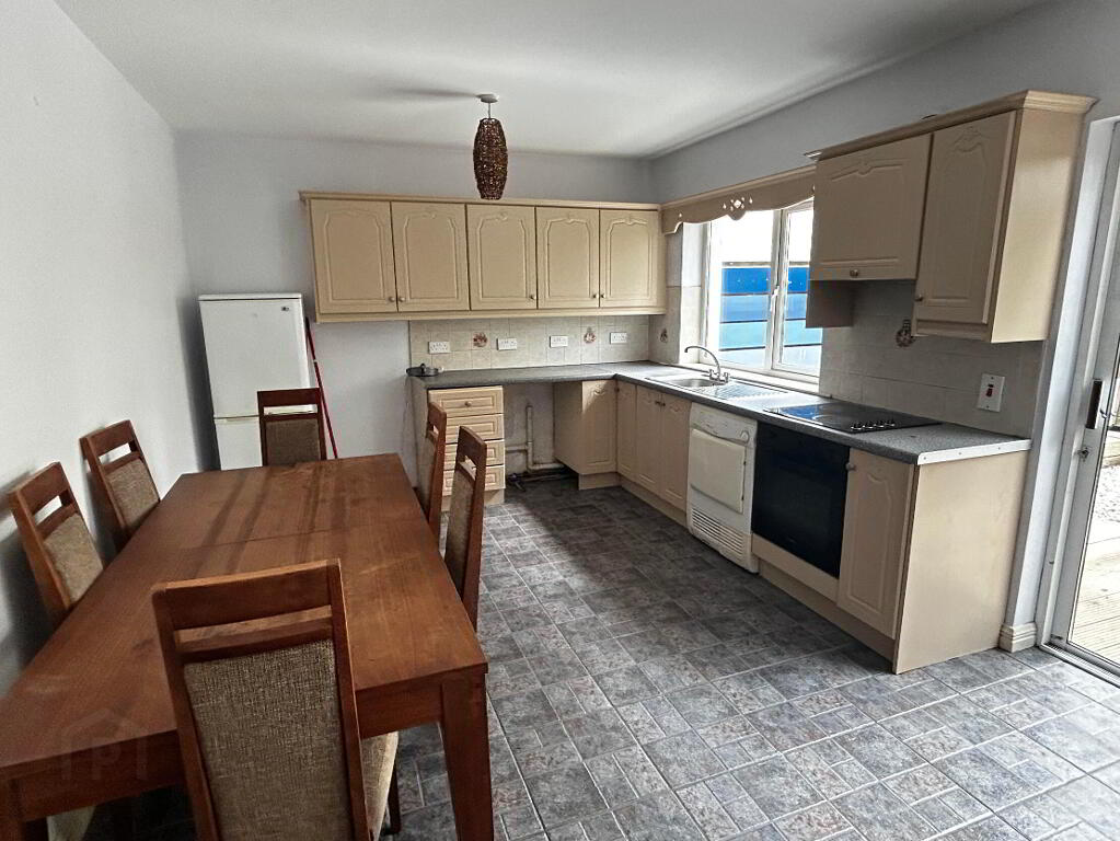 5.30m x 3.35m Kitchen and dining area at the rear with patio door to rear decking and back garden. Fitted units with lots of storage space, plumbed for washer, single drainer sink, electric hob and oven. Mulitple Power points