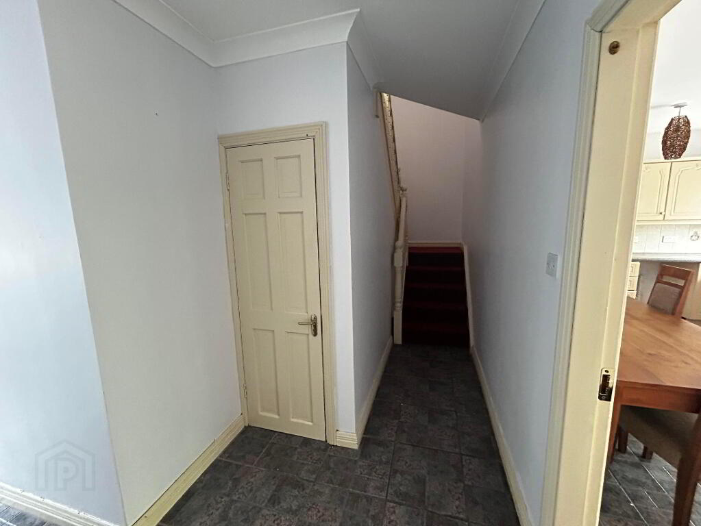5.51m x 1.13m Entrance hallway with tiling, door to living room, stairs leading to first floor, power points and Hotpress