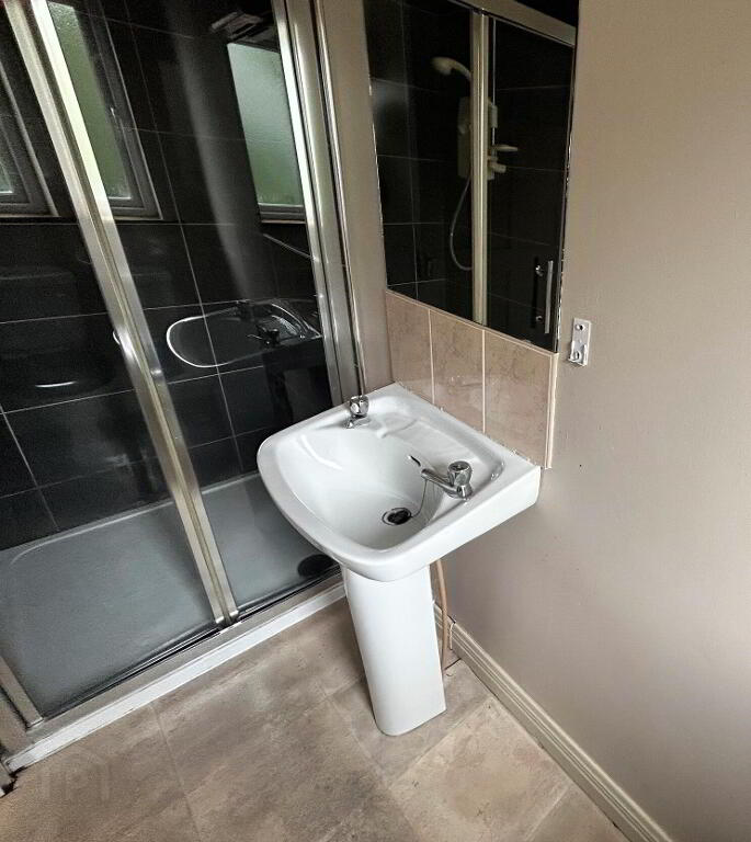 1.90m x 0.94m Tiled floor, sink, toilet , shower, mirror and frosted glass window.