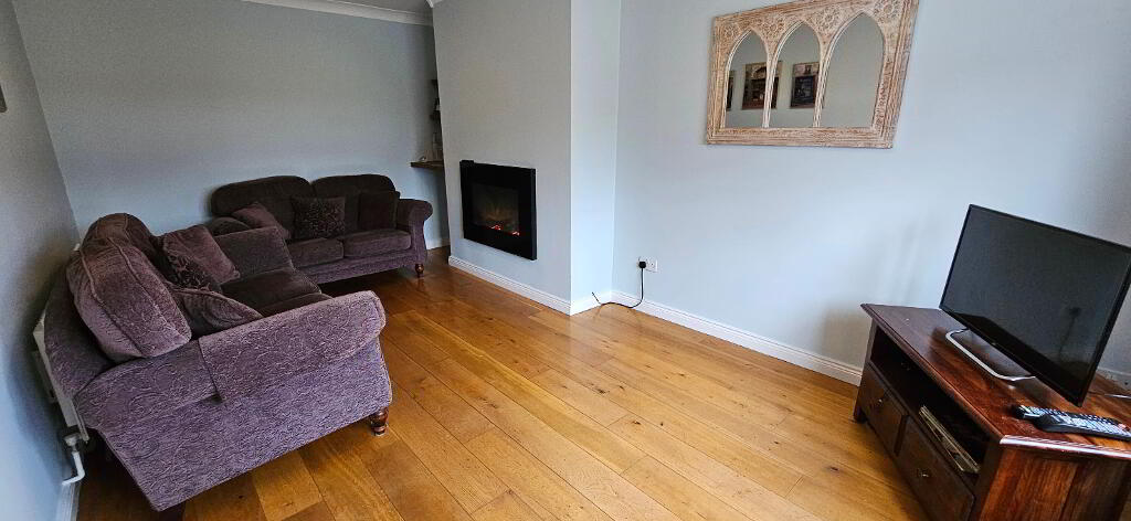 5.40m x 3.05m Ceiling coving, solid wood flooring, raised electric flame effect fire, 2 x radiator, power points, tv point.