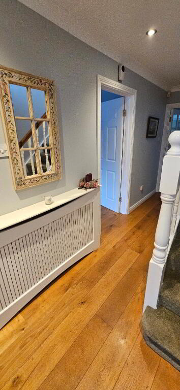 4.92m x 1.91m Recessed lights, ceiling coving, solid wood flooring, radiator, phone point, under stairs storage, wc under stairs which is fully tiled with wc, whb and extractor fan, carpeted stairs.