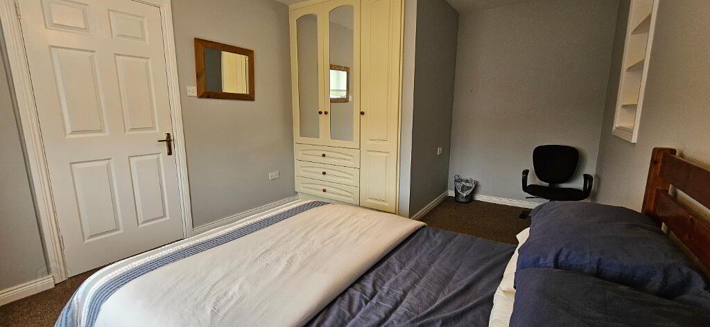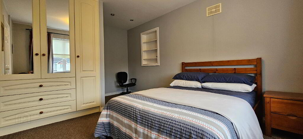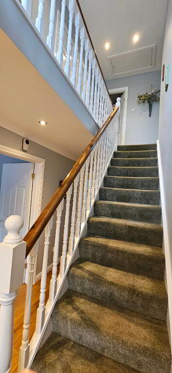 5.30m x 1.78m Carpeted, radiator, hot press, stira ladder to floored attic, recessed lights.