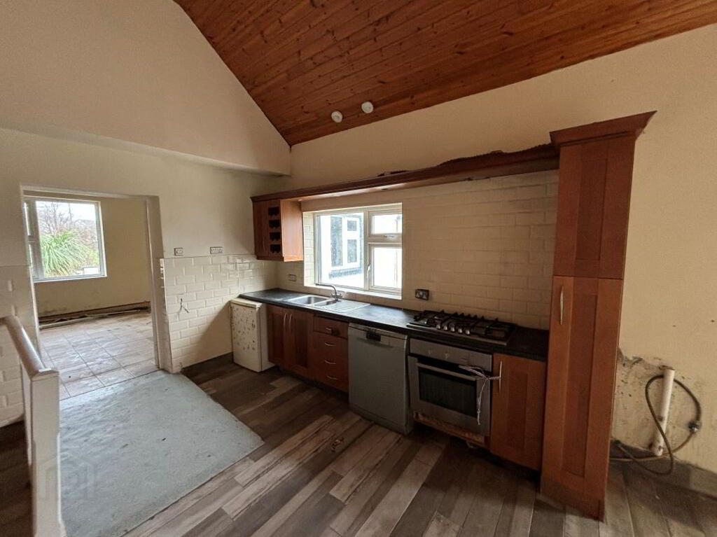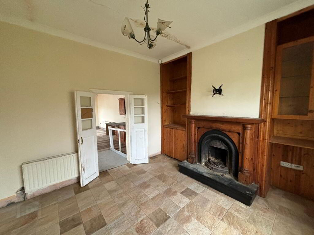 Internally the property comprises an entrance hallway, spacious living room with open fire place with tiled flooring. Double doors lead to a spacious kitchen/ dining area. The kitchen has been recently fitted with floor & wall units. A main bathroom, two spacious double bedrooms and a single bedroom completes the accommodation. There is a stira pull down attic stairs.