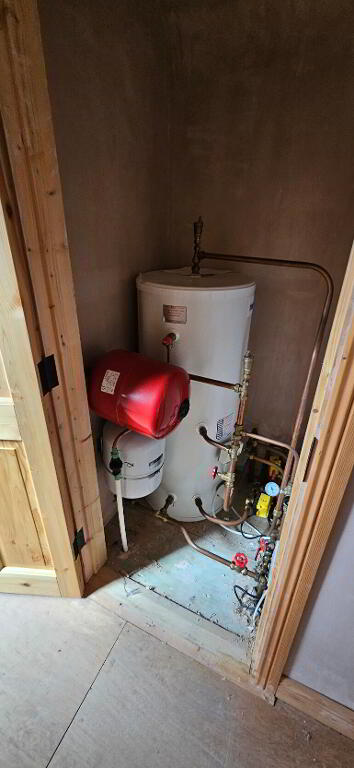 2.46m x 1.98m Concrete floor, radiator, power, plumber for appliances.