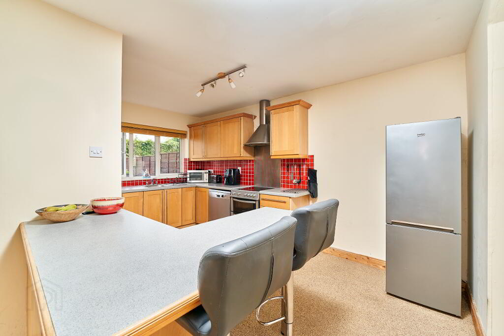 Kitchen 5.44m x 2.86m - L shaped with shaker style kitchen units. Breakfast bar.