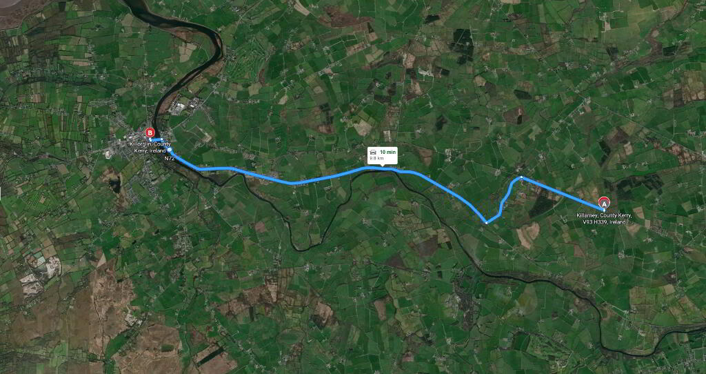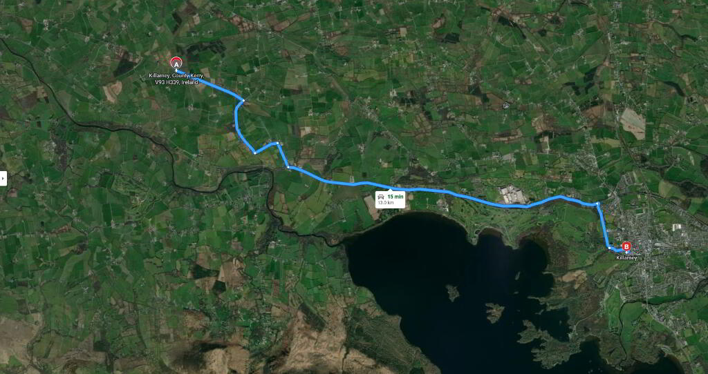 From Killarney take the Ring of Kerry A72 Road to Beaufort Bridge (8km). Take a right just before Beaufort Bridge towards Lahard for 1.2km. Take next left for 1km and house V93H339 is on the left.