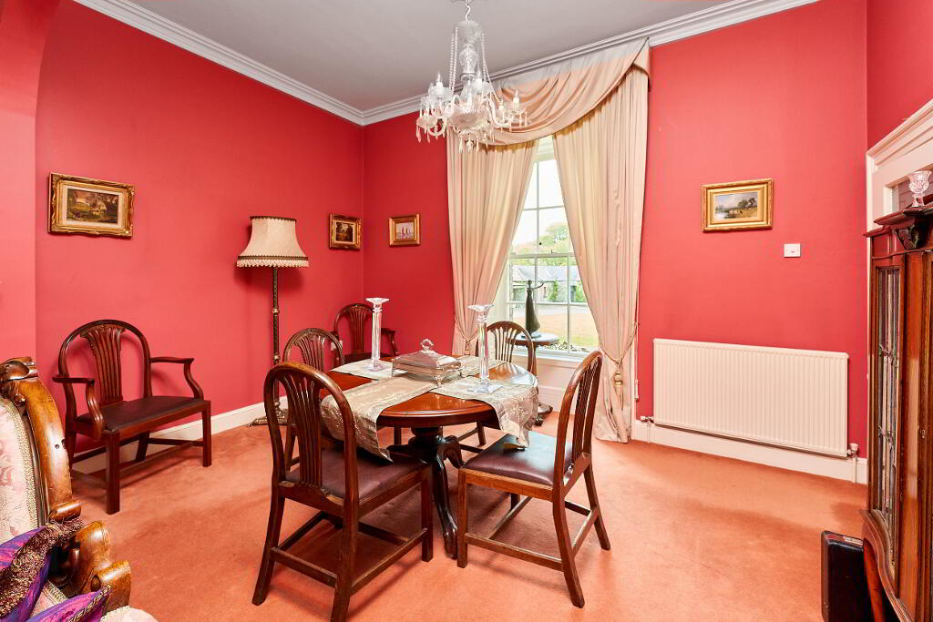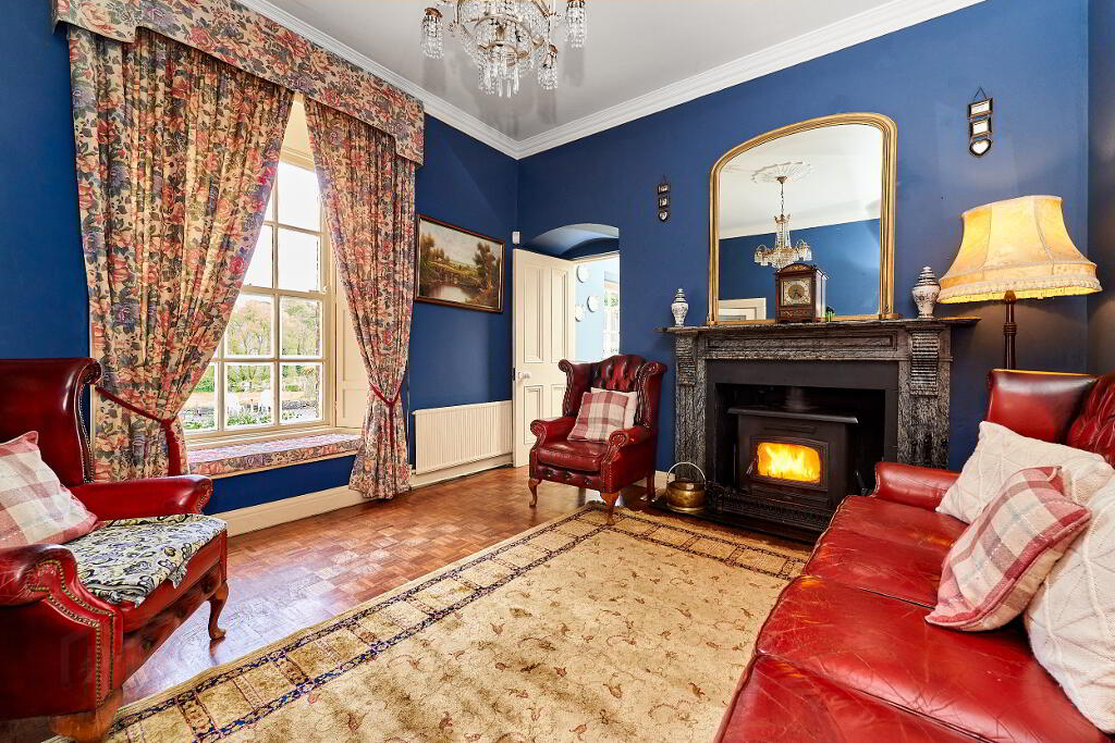 As you enter Liscarton House you are met with high ceilings which boast lavish coving and detailed centrepieces – the owners care and attention to the upkeep of the home is evident throughout especially when it comes to the period features and decoration of the home. From the hallway you have access to the sitting room to your right, which is completed with ceiling rose and cornicing and the drawing / dining to your left which is an ideal space for entertaining.