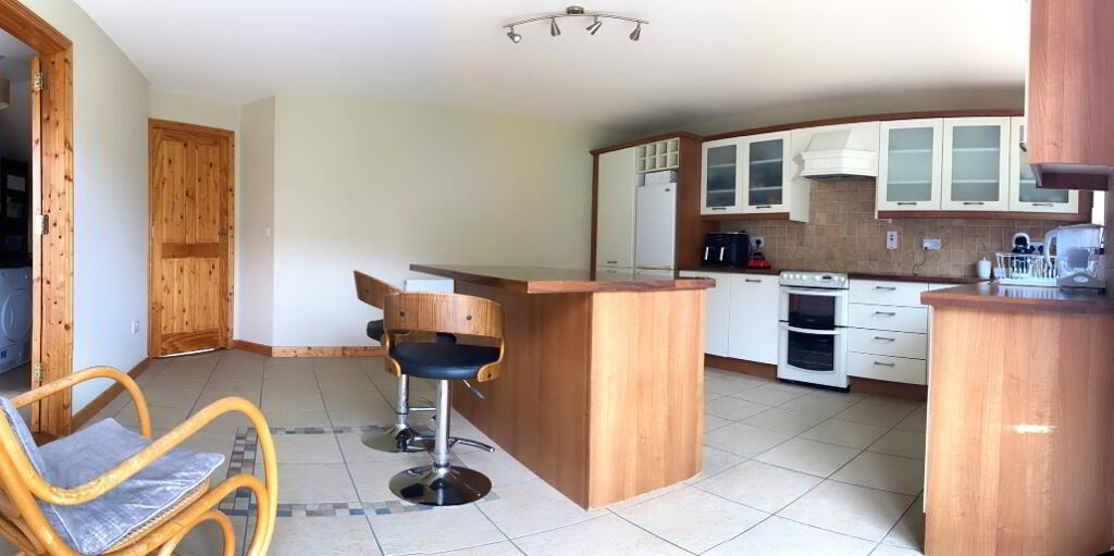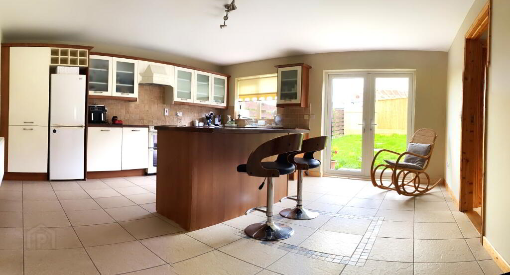 Kitchen with Dining area: A very spacious everyday room, with a significant range of Kitchen units, and a substantial island unit with breakfast bar. Ample dining space. Finished with tiled flooring. Double doors to the rear garden.