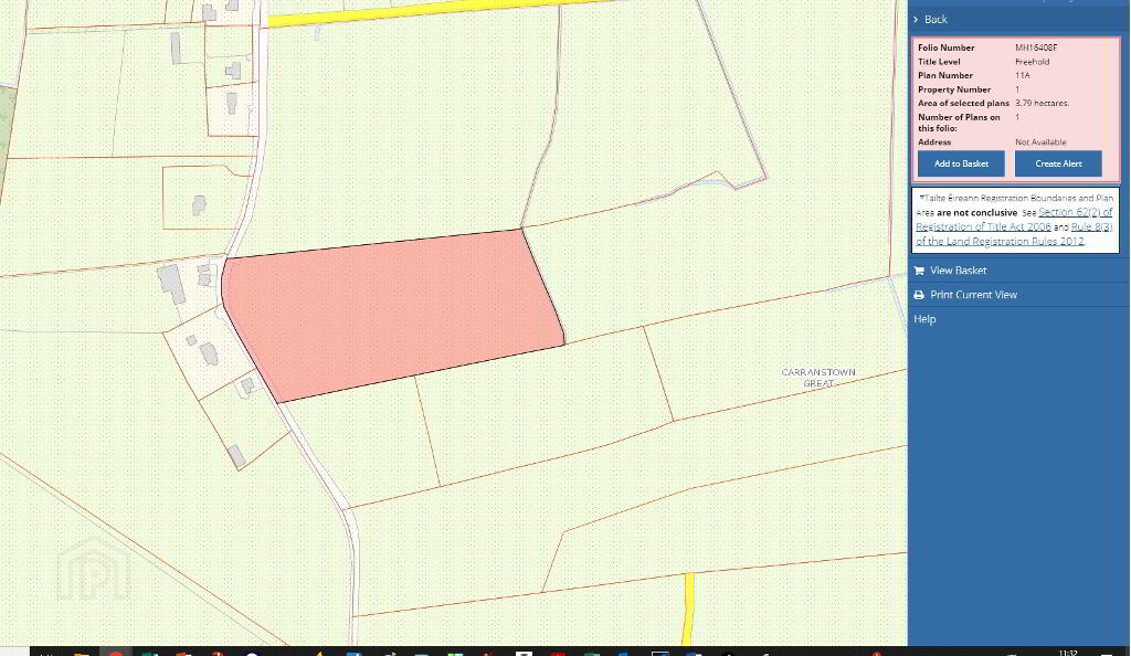 Being comprised in folio MH16408F and extend to approximately 9.36 acres / 3.79 hectares as shaded on the map below. The lands which have been in the same family ownership for a long number of years have always been well cared for and consequently can be found to be in excellent heart.